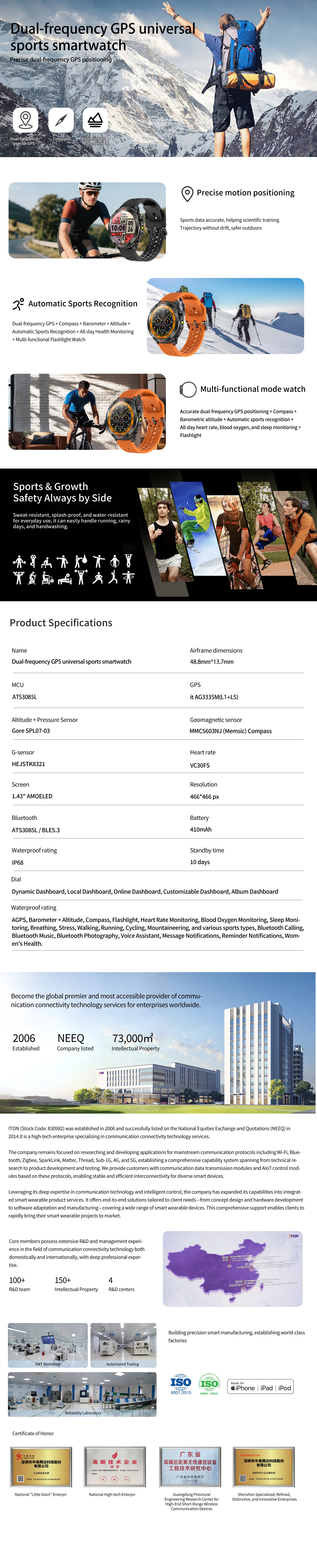 • (Z6)Dual-frequency GPS universal  sports smartwatch Solution